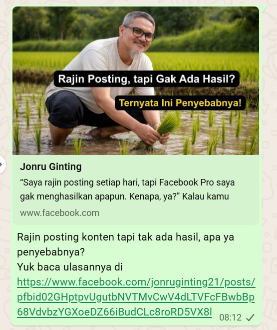 Contoh screenshot untuk konten yang di-share ke Group WhatsApp: